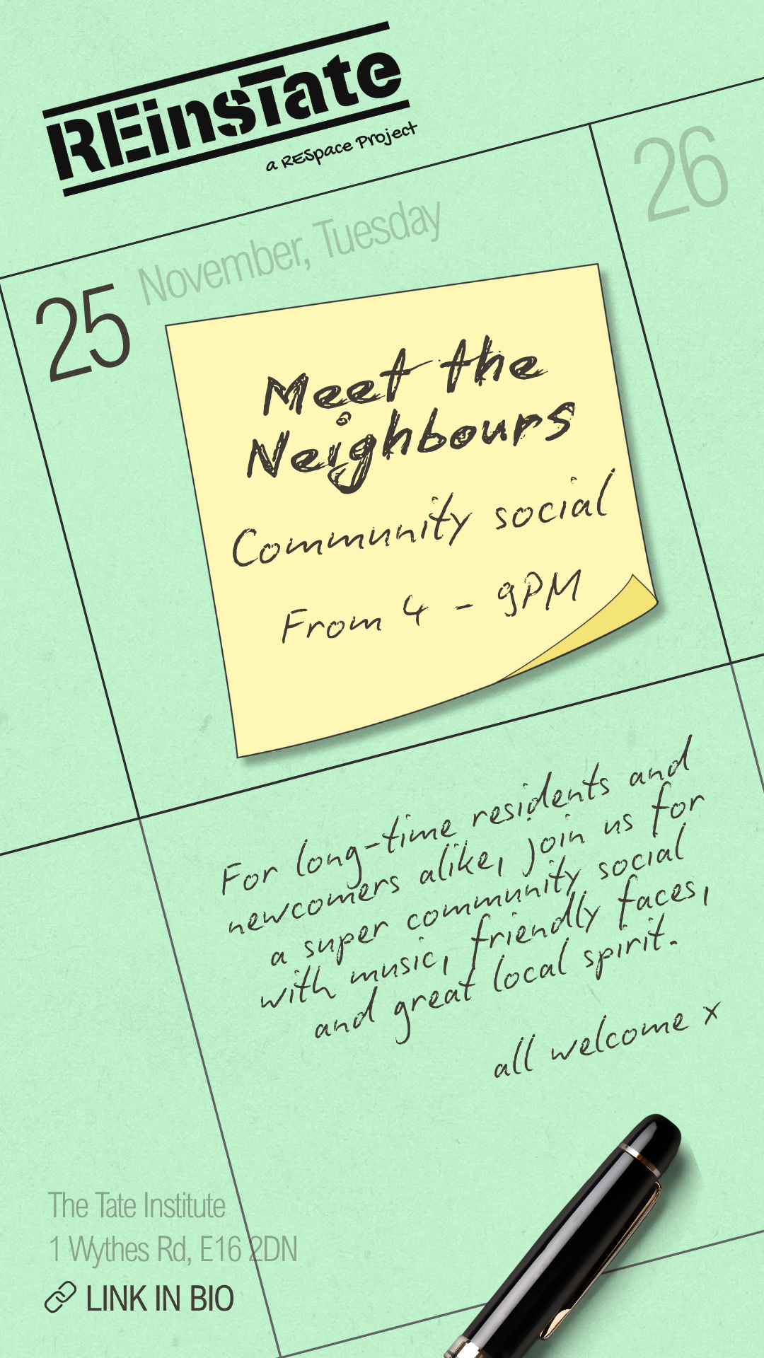 There will be a hive of activity running along side the neigbour meet up, learn more here: reinstate.eventschedule.com/clothes-swap-meet-your-neighbours?date=2025-11-25